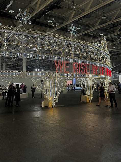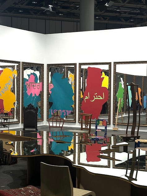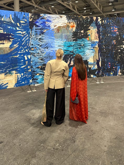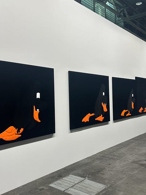 Inside, hardly any art was visible, so we started at the foyer with a glass of champagne and chitchatting with art world friends and familiar faces. Afterward, the booths became more roomy, and we could start to view art properly. There were some fantastic pieces from contemporary but also modern names. However, I feel like the majority of artists repeat from fair to fair, and the curation of booths is more or less the same; after a while, when exhaustion kicks in, everything blends in. For some reason, I tend to expect something groundbreaking from an art fair; perhaps that explains why I like Unlimited the most, as it is the closest to ‘groundbreaking.’ In Frieze London, I feel like booth curation gets more creative, but I still love Art Basel for the overall experience - the quality, the volume, the socializing, and the accompanying events and exhibitions. The galleries are already reporting strong sales despite broader economic uncertainty, trade tensions, and shifting market dynamics.
