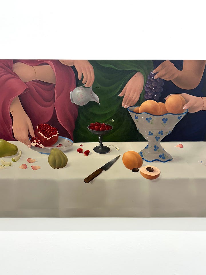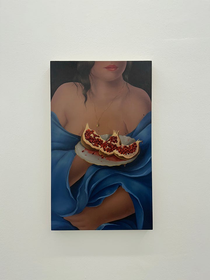 This show feels almost emotional for me. I discovered Natalia's profile on Instagram sometime before covid and thought she was brilliant. Stupid me, I wasn't comfortable buying art that much back then, and I only reached out to her after founding Artistellar. But at that time, her career was already taking off, and there was no chance of working together. And now it's basically impossible to get a piece ( won’t even talk about working together). Anyhow, I feel like her work is only getting better -this show was truly beautiful, a contemporary version of religious iconography but with a juicy twist.